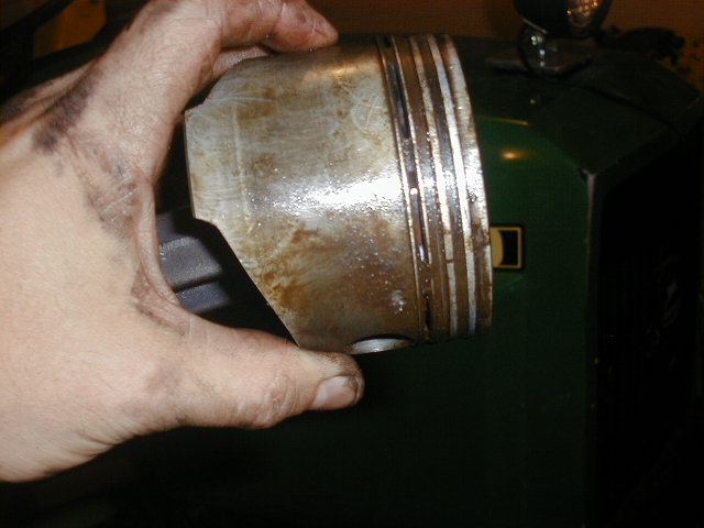 When I first pulled it out, all three rings were cemented solidly into their respective grooves… The oil control ring and expander show visible signs of rust… Should the rings BE cemented like that? I don’t THINK so… I was able to free up the oil control ring, but the top two compression rings are solidly in their grooves, likely rusted in there… So, what do I do? Yank’em, clean the grooves, and replace them? Guess I gotta buy a teeny tiny ring expander (unless anyone has any suggestions)