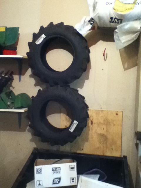 So I’ve HAD these tires since early in the restore process, just thought of taking a picture of them tonight… These came from a friend of mine, Morris, who bought them when he was originally going to restore a similar tractor slightly newer than mine… But then he got his BIGGER JD 317, and these didn’t seem like a need for him any more… But Bror needed some new booties…