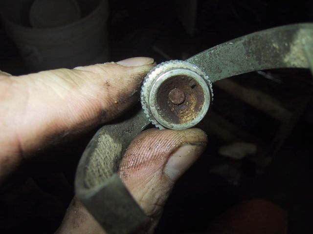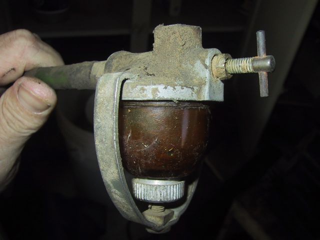 “The sediment bowl is easily cleaned by closing the shut-off valve and loosening the thumb nut until the bowl can be removed…” 45 minutes, a pair of slip-joint pliers and a bunch of shots of WD-40 later… I have THIS,