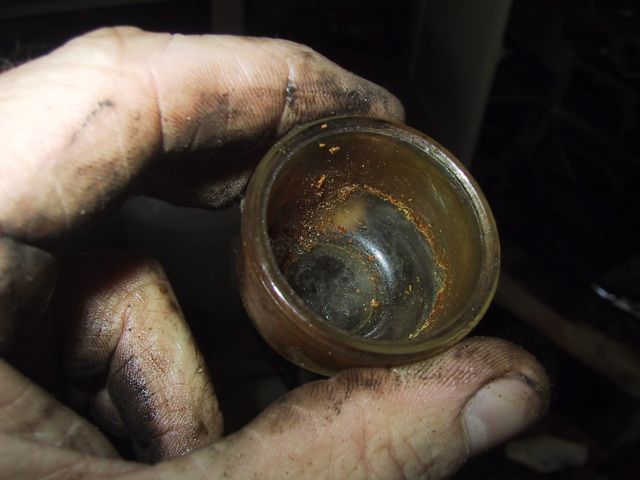 The sediment bowl top, after about an hour of scraping and scrubbing and picking with sharp implements:
