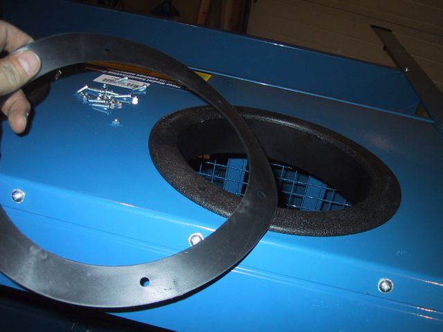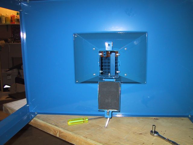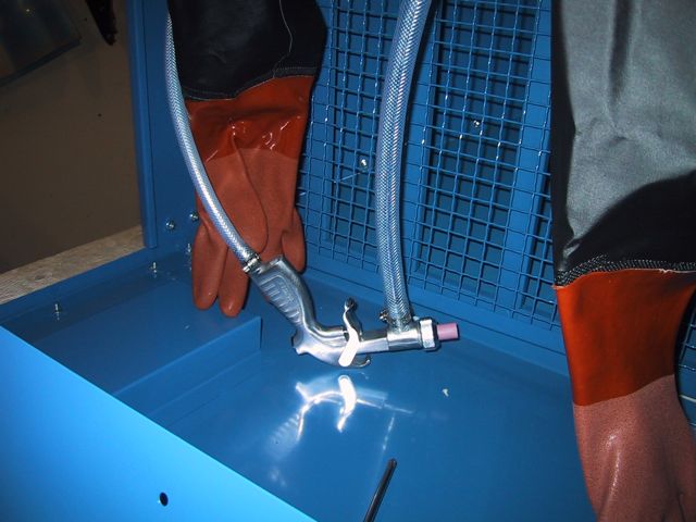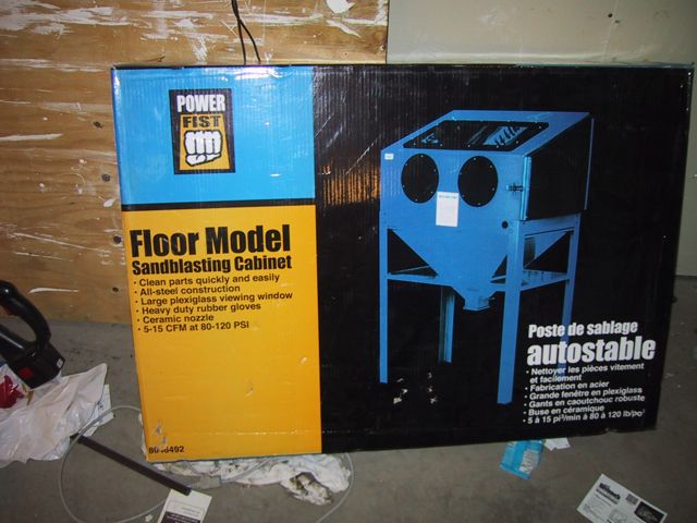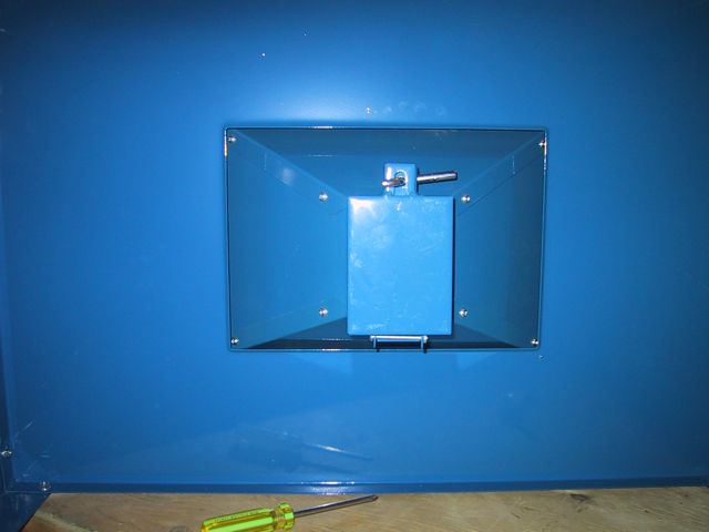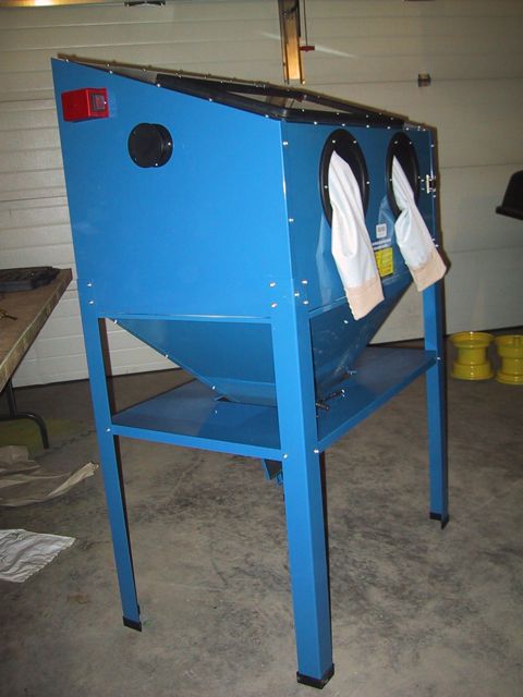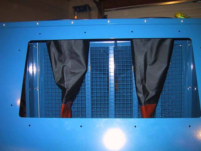 Hmmm… Dunno what THIS access hole is for… MOUNTING a light? This setup didn’t come with a light, just a switch… Although there ARE two clamps, labelled Light Clamps, which bolt on to the inside….. Dunno what kinda light you can MOUNT inside a sandblasting cabinet, tho…