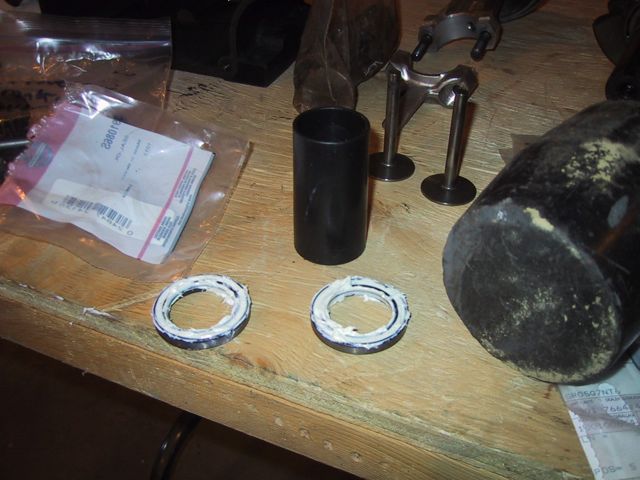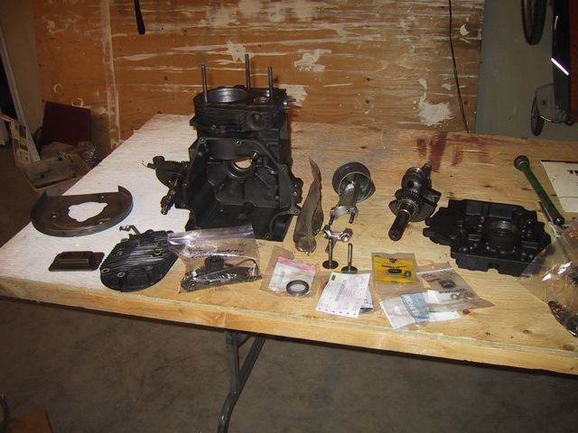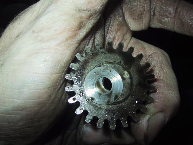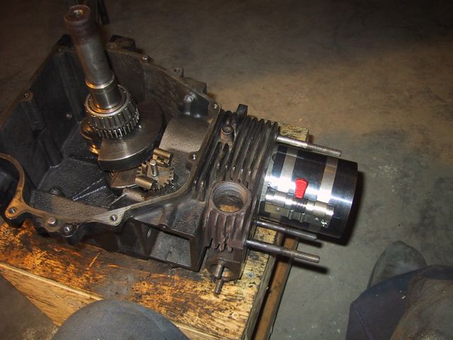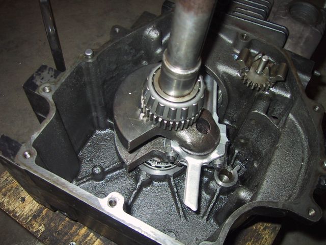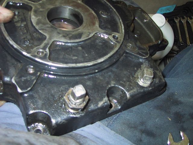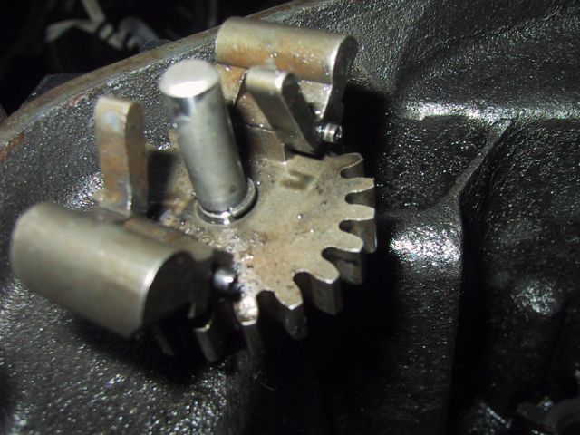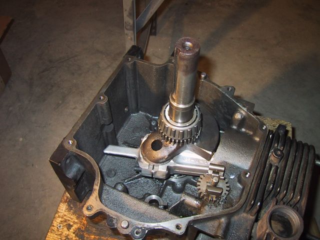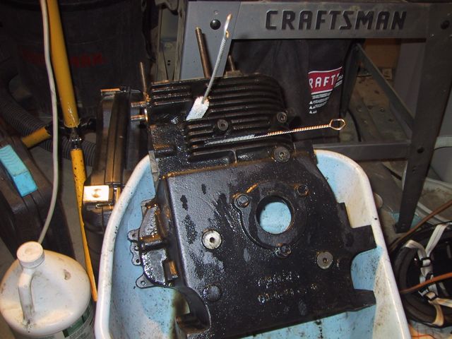 I then pulled all the rest of the plugs off the crankcase cover… What I don’t know is why these two would be there at all… and I’m really not sure why the LEFT one looks like a fitting for, say an oil pressure gauge… So, then a whole bunch of cleaning and scrubbing and drying, then firing up the air compressor to do a final air dry… My bottle brushes came in REAL handy (well, actually they’re cleaning brushes from a friend’s water filtration system). I got SO ambitious, and figured I’d start on the actual crank case… First order of business, after my successful removal of the governor arm, was removal of the governor spool (Also held on by a j-clip!). I was surprised to find a bushing/washer behind the spool… So, now that supper’s done, and Kidlet #2’s still in charge of LTBabe, I’m gonna head back out and clean the OTHER side of the crank case… __________________