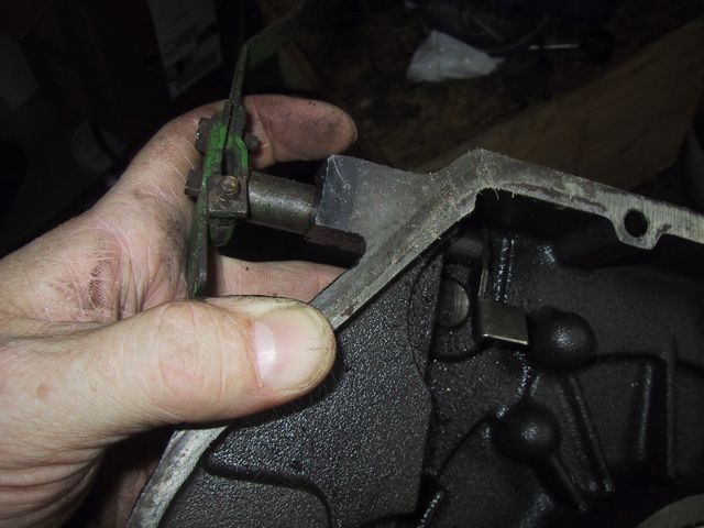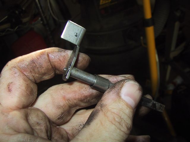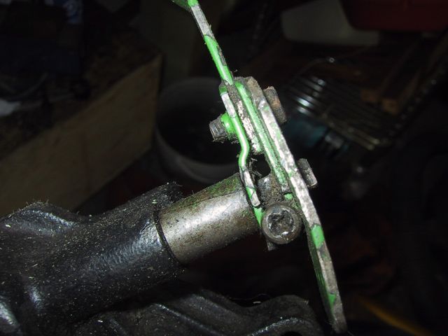 Of course the governor arm was held in by one of those infamous “j-clips”… but as you can see, I triumphed! HahA! My secret was to move to the center of the garage, then take my calipers So, once I got the shaft out I noticed that the end piece here seems a bit loose on the shaft…. Wonder if that means replacement….