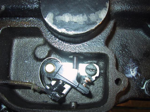Figured before I got much more strapped onto the engine, I’d better reinstall the points…. Here’s the old ones, and the fibre rod, which I can’t get a new one of, apparently