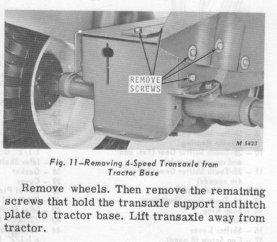 4. Put the ATV jack underneath the back of the tractor to support the transaxle.