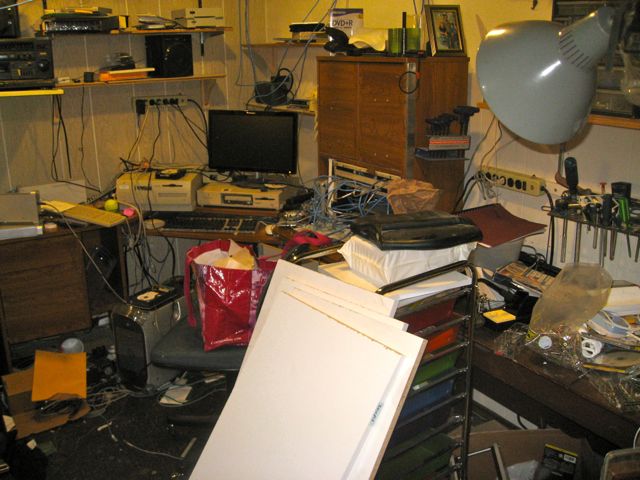 Well, its still a bit chilly out there, AND I did make the mistake(?) of agreeing that I’d try to clean out the LAST holdout in our house, my personal disaster area… I’ve enlisted Kidlet #1 and #2 to help, with brib-er, promises of being able to renovate the area and set up an entertainment cave… So, yesterday, Kidlet #1 cracked the whip, and we worked from about 3 pm to 10 pm. This was what it looked like, at about supper time… AFTER we hauled out 3 leaf bags of stuff to go to the dump… and AFTER my vinyl collection left…