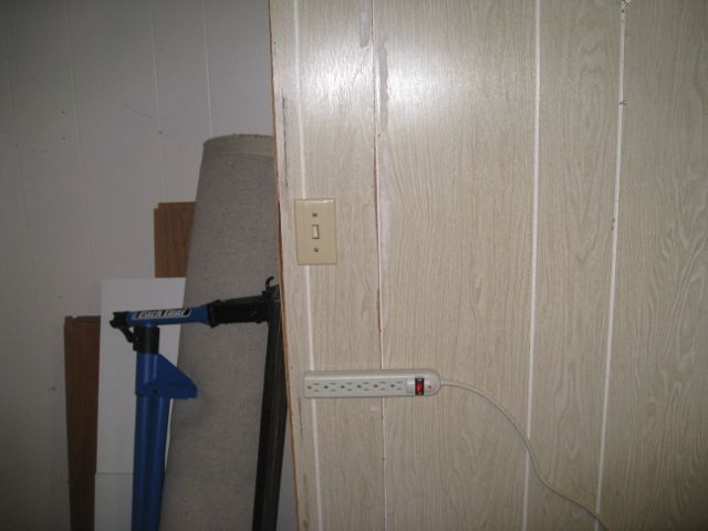 Took Tuesday morning off work to pull the paneling off the wall, run the switch wire to its spot, mount the box, put the switch in the box, tuck-tape the vapor barrier, cut the hole in the paneling, put the paneling back up, discover that I’m an idiot because the switch should go OUTSIDE the paneling before screwing it into the box, cut the hole bigger so I can get the switch out through it, re-screw the switch onto the box, then finally put the plate back on.