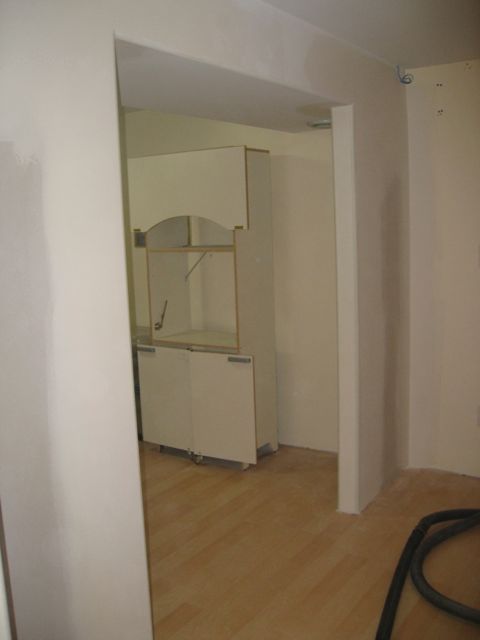 Well, actually, its another reno, AND its a wall! and hopefully it will soon be a pair of barn-style sliding doors, based on this online tutorial.