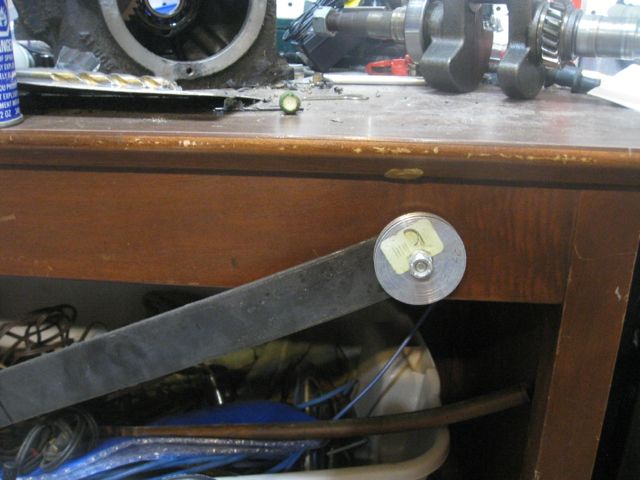 I ran a 2.5″ x 3/8″ bolt through the side of my workbench, threw the steel stock onto it, the sheave onto it, and secured it all with a nylock nut.  Securing it that way enabled me to do THIS: