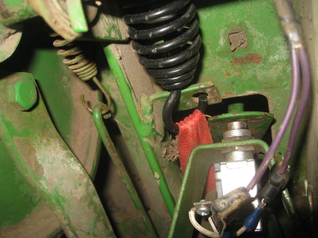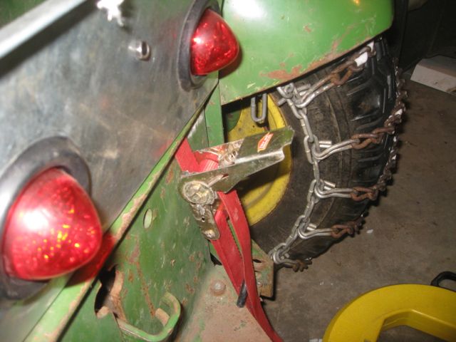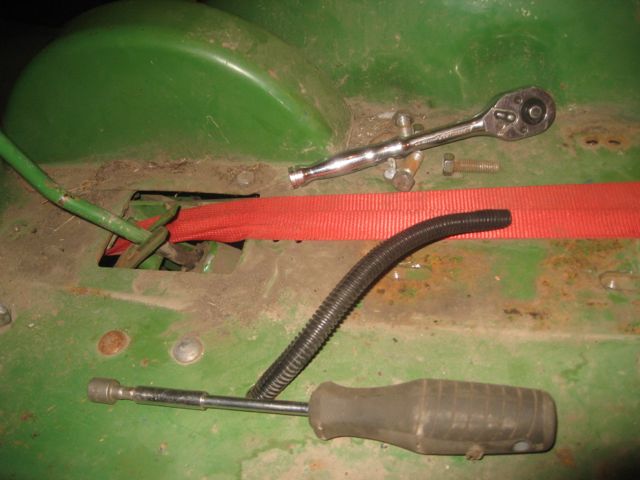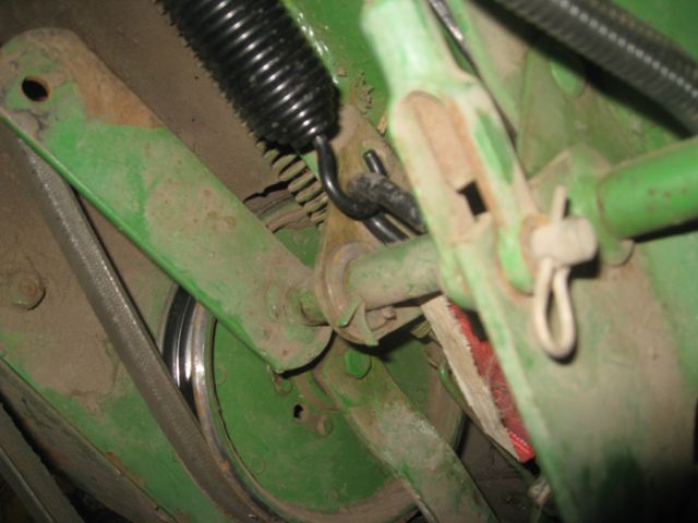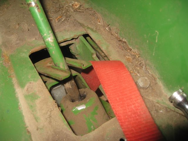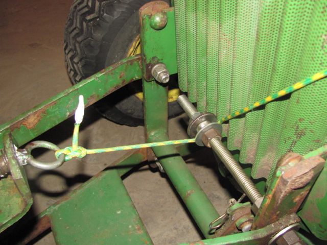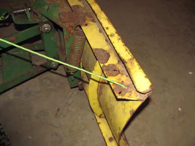 One of the things I quickly discovered is that its almost impossible to pull the lock pin with the cable at an angle. and I know one of the tractor forum guys mentioned using pulleys… But I don’t have any of those handy. What I DO have is some 1/2″ threaded rod, some 1/2″ nuts and some plate washers. Turning the pin upside down so the grabby thing is angled downward makes it function much better. However, I can’t get the pin to pull if I have the blade raised all the way up…